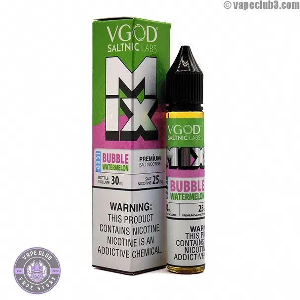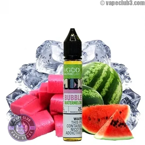 سالت آدامس هندوانه یخ ویگاد میکس | VGod ICE Bubble Watermelon Mix ترکیبی جذاب و خنک از طعم آدامس هندوانه با لایهای از هندوانه رسیده و شیرین به همراه خنکی مطبوع منتول را تجربه میکنید.