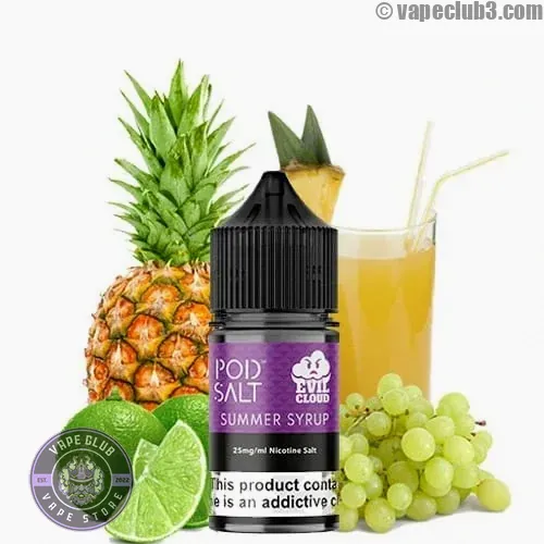 سالت آناناس انگور لیمو پادسالت | PodSalt Summer Syrup تجربهای است از یک کوکتل میوهای تابستانی که هر نوبت بخار، حس شاداب و زندهای را القا میکند.