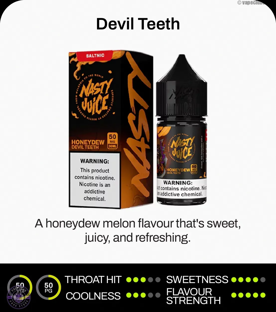 پروفایل طعمی سالت خربزه نستی | Nasty Honeydew(Devil Teeth) OG Series Salt:
