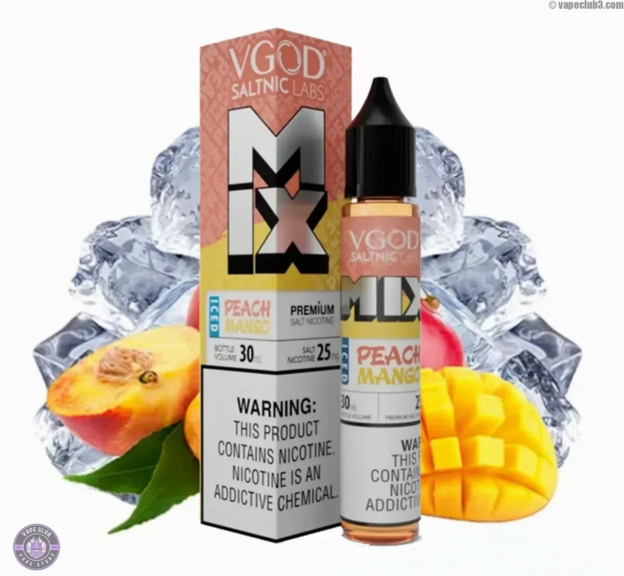 سالت هلو انبه یخ ویگاد سری میکس VGod ICE Peach Mango Salt Nicotine