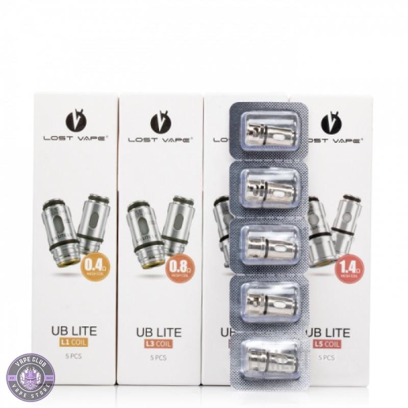 کویل یو بی لایت لاست ویپ UB Lite Lostvape با مقاومت های 0.3، 0.4، 0.6، 0.8، 1.0، 1.2 و 1.4 عرضه میشوند. این کویل ها برای مصرف سالت نیکوتین و ایجویس ها مناسب میباشند و برای اتومایزر Ursa Mini Lostvape و UB Lite Pod Kits Lostvape و دیوایس هایی که در زیر اشاره میکنیم طراحی شده اند.